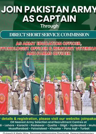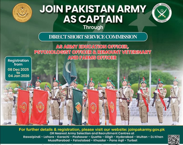 Captain Career Opportunities in Pakistan Army, December 2025 Direct Short Service Commission