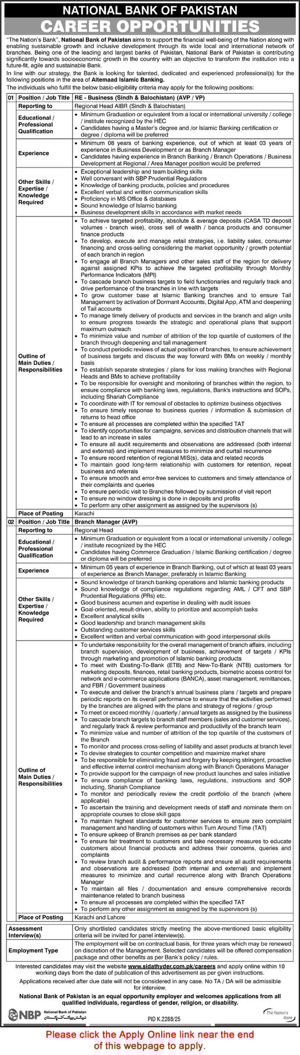 NBP Jobs 2026 Branch Managers & RE Business